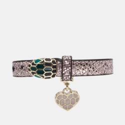 Bvlgari Serpenti Forever Metallic Pink Karung Leather Heart Charm Bracelet