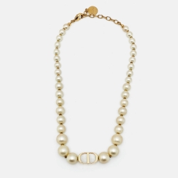 Dior 30 Montaigne Faux Pearl Gold Tone Choker Necklace