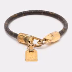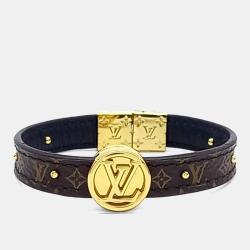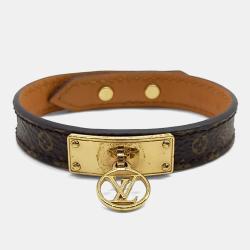 Louis Vuitton Monogram Leather Luck It Gold Tone Bracelet