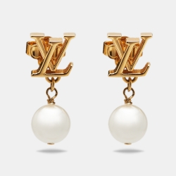 Louis Vuitton Iconic Louisa Faux Pearl Gold Tone Earrings