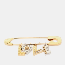 Louis Vuitton Damier 'Love' Crystal Two Tone Safety Pin Brooch
