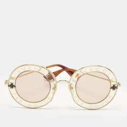 Gucci Gold Tone/Brown Gradient GG0105S Round Sunglasses