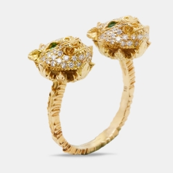 Gucci Le Marché des Merveilles Diamonds Tsavorite Garnet 18k Yellow Gold Ring Size 56