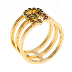 Gucci GG Running Multicolor Gemstones 18K Yellow Gold Ring Size 50.5