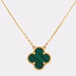 Van Cleef & Arpels Vintage Alhambra Malachite 18k Yellow Gold Necklace