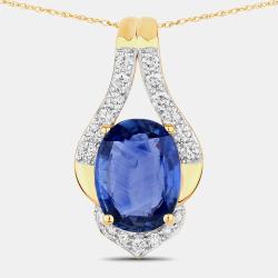 6.21 cts Blue Sapphire and Diamond 14K Yellow Gold Statement Pendant
