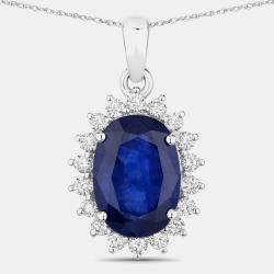 4.23 cts Ceylon Blue Sapphire and Diamond 18K White Gold Halo Pendant