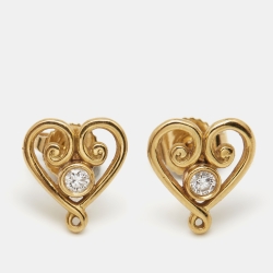 Tiffany & Co. Venezia Heart Diamond 18k Yellow Gold Stud Earrings