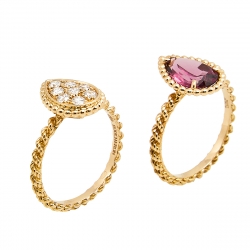 Boucheron Serpent Boheme S Motif Diamond and Rhodolite Garnet 18k Rose Gold Set of 2 Rings Size 52