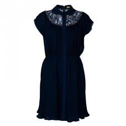 Alice + Olivia Black Clover Lace Open-Back Dress M