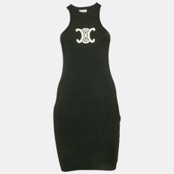 Celine Black Rib Knit Sleeveless Triomphe Tank Dress S