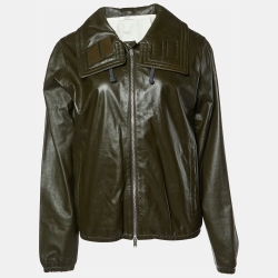 Celine Green Leather Hooded Zip-Up Jacket M