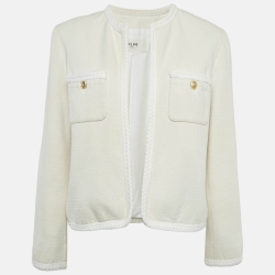 Celine Off-White Silk Braid Trim Detail Open Front Jacket M
