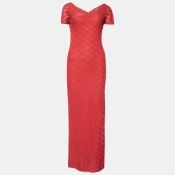 Celine Red Perforated Knit Maxi Dress M