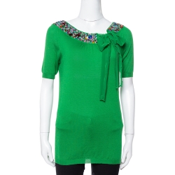 Dior Green Cashmere & Silk Knit Embellished Neck Top M