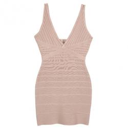Herve Leger Pink Coated Knit Bandage Knit Sleeveless Bodycon Dress S