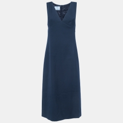 Prada Navy Blue Crepe Sleeveless Midi Dress S