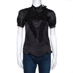 Prada Black Silk Ruffle Trim Button Front Shirt M