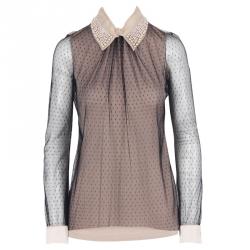 Valentino Black & Beige Embellished Lace Top M