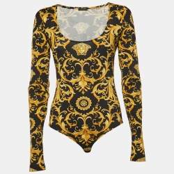 Versace Black Medusa Renaissance Print Stretch Knit Full Sleeve Bodysuit S