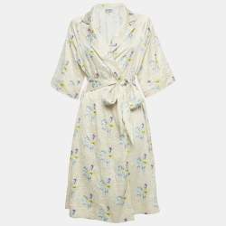 Ganni Cream Floral Print Satin Crinkled Wrap Dress M