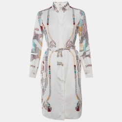 Hermes Ivory Cavalcadour Morning Print Silk Shirt Dress S