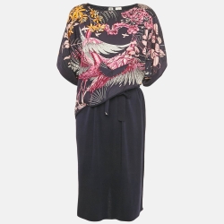Hermes Black Printed Silk & Jersey Zouaves et Dragons Finesse Short Dress M