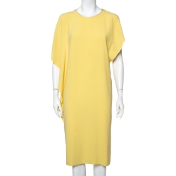 Joseph Yellow Stretch Crepe Ruffled Midi Dress M