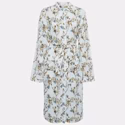 Off-White White Floral Logo Print Crepe Belted Midi Shirt Dress M