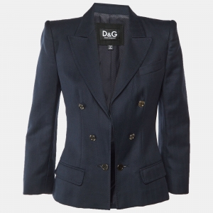 D&G Navy Blue Sequin Embellished Silk Blend Mid Length Jacket M