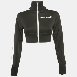 Palm Angels Black Logo Print Jersey Zip-Up Cropped Jacket XS