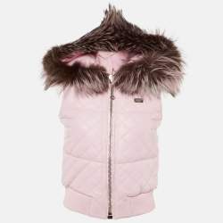 Philipp Plein Pink Leather & Fox Fur Hooded Sleeveless Jacket S