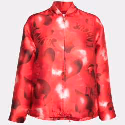Valentino Red Printed Satin Zip Front Oversized Jacket S