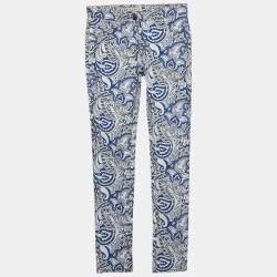 Etro Indigo Faded Effect Paisley Printed Denim Slim Fit Jeans M