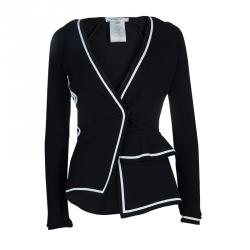 Givenchy Black Applique Embroidered Ruffle Detail Knit Jacket XS