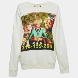 Gucci Off-White Portrait Printed Cotton Knit Sweatshirt S