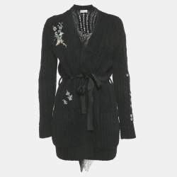 Red Valentino Grey Wool Embellished Mesh Overlay Bow Detail Cardigan S