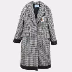 Prada Black Printed Virgin Wool Button Front Coat M