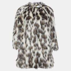 Prada Multicolor Printed Faux Fur Hook Front Coat M