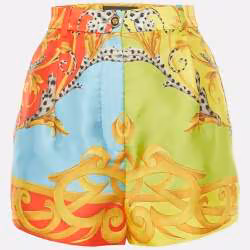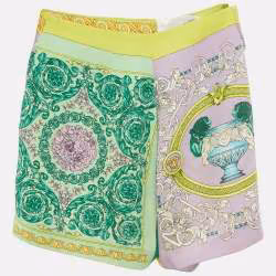Versace Multicolor Barocco Acanthus Print Satin Shorts S
