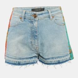 Versace Blue Denim Contrast Trimmed Low Waist Royal Rebellion Shorts S