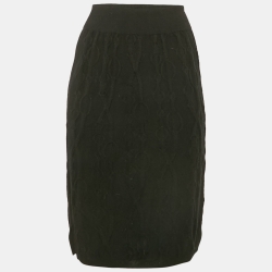 Hermes Black Patterned Cashmere Knit Pencil Skirt M