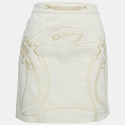 Hermès Beige Embroidered Denim Mini Skirt M