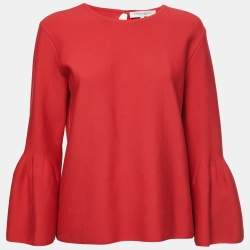 Carolina Herrera Red Knit Bell-Sleeve Top L