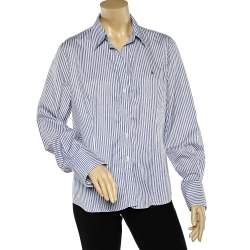 CH Carolina Herrera Blue and Beige Striped Cotton Jersey Necktie Detail Top XS