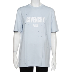 Givenchy Faded Blue Cotton Destroyed Oversized T-Shirt S