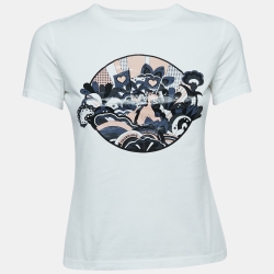 Hermes Blue/Multicolor Printed Cotton Round Neck T-Shirt S