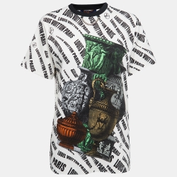 Louis Vuitton Fornasetti Off-White Logo Vase Printed Cotton Half Sleeve Chain Detail Crew Neck T-Shirt S