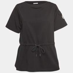 Moncler Black Cotton Knit Waist Tie Up Top S