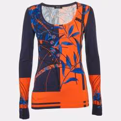 Versace Blue/Orange Printed Jersey Long Sleeve T-Shirt M